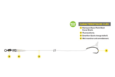Conçu pour présenter des pop-ups, ce montage offre une liberté de mouvement totale à l’hameçon. Quelle que soit la manière dont la carpe aborde l’appât, l’orientation reste parfaite pour piquer. Sa polyvalence en fait un allié précieux : il fonctionne sur la plupart des fonds et s’adapte à de nombreux diamètres de bouillettes. Quand le poisson est tatillon, le Ronnie a souvent un coup d’avance.